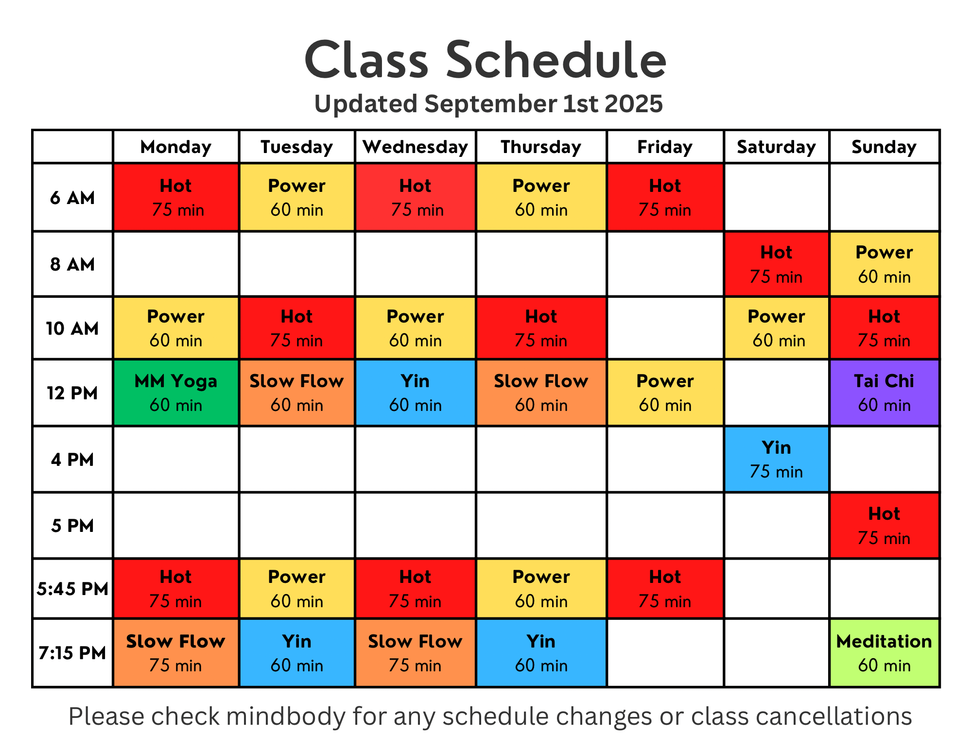 If you would like to sign up for a class you can do so through MindBody, or you are welcome to just drop in! Please check MindBody for any schedule updates or class cancellations.